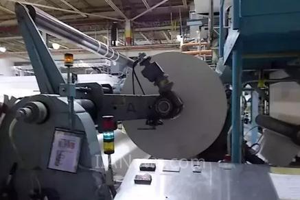 这一过程的每一步都与已用完的纸卷量相关。首先,机器的旋转进料架是旋转的,将新的纸卷移动到拼接处。新纸卷的速度要与已用完的纸卷的线速度相匹配。