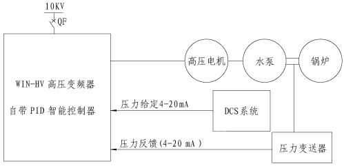2.从母管上取压力变送器的4~20mA电流信号作为反馈,给定频率根据用户从DCS系统直接给定;