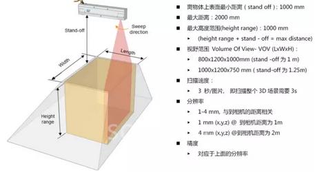 其中3D 相机为 ScanningRuler ,它发出一条红色的激光线,能测量物体的轮廓,由于内部有一个旋转机构,能够带动激光线旋转一定的角度,如下图所示,因此,3D 相机固定安装,通过内部装置的旋转,能够测量到相机下方的3D 场景。