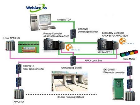 在众多因素的考虑下,盛福工程公司与邑控科技公司,决定采用即使在恶劣环境下仍能稳定、可靠运作的研华工业级光纤转换器EKI系列,及拥有快速量测、记录、控制、储存及远端维护等特性,且完全符合水利工程等环境监控应用的研华PAC构成闸门监控系统。