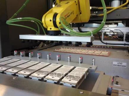 Clear Automation给出的方案包括3台型号为LR Mate 200iC/5H的FANUC万能迷你智能机器人。在设计为100件每分钟的包装线上,第一台FANUC机器人将竖置的唇膏管从传送带上取下并横放到贴标签机传送带上等待贴标。待贴标完成后,唇膏管被送上传送带,进入吸塑包装流程,这时第二台机器人每次抓取两支唇膏并将它们放到吸塑包装机的腔体内,待吸塑包装完成后,第三台倒吊安装的机器人将成品抓出,并对包装完整度进行检查,空包装会被丢弃,最后包装完好的产品会被放到传送带出口等待装箱。