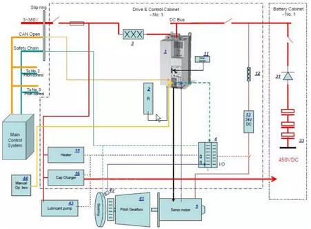 关键字: 变桨系统,CAN总线,Lenze风电专用型驱动器,安全链,充电机,后备电源
