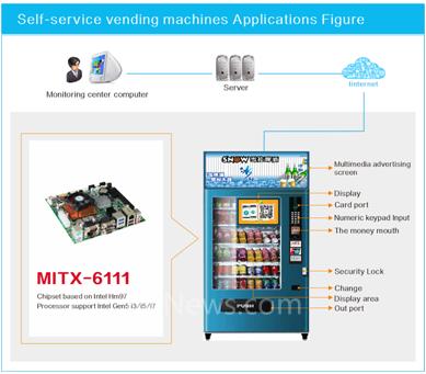 华北工控公司作为国内工控机(IPC)的领导品牌,利用intel最新芯片平台,针对自动售卖机系统整体解决方案行业的性能需求,为该行业专门量身定作了嵌入式工业主板MITX-6111,此板集成的功能相当完善,稳定性高,扩展性强,受到了众多自动售卖机设备生产厂商的亲睐。