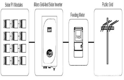 通过电池PV组件吸收太阳光照,直流电通过逆变器的转变,最终输出到办公室用电,剩余电量可并入电网进行销售而获取投资回报。