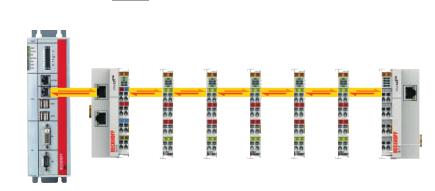 EtherCAT 卓越的性能不仅简化了控制架构,而且,还简化了IPC 本身的硬件结构:现场总线接口 – 出于投资保护、从容转换为 EtherCAT,或者,出于连接邻近系统等原因,对于大量设备来说仍然具有必要性– 可以实现为 EtherCAT 终端,从而在本地完成连接。本地 PC总线上的插槽数量对于系统的结构和可扩展性不再具备决定性作用。IPC 的结构更加紧凑。现场总线电缆长度变得更短,从而实现更高波特率 – 进一步提高了工作性能。