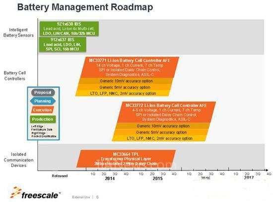 MC33772与飞思卡尔全面的电池控制器产品相组合,可支持广泛的电池用化学成分,包括磷酸铁锂、锂镍锰钴氧化物、钛酸锂和锂聚合物,能轻松扩展解决方案,无需进行新的研发投资。据悉,MC33772的样片会在明年(2016年)3季度量产。