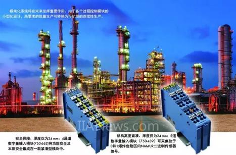 ■过程控制领域的未来属于模块化系统及日益流行的分布式自动化理念。在多数情况下,分布式系统更加适用,因为通过模块化和小型化可将批量生产过程转换为更加易于控制和扩展的连续性生产过程。WAGO-I/O-SYSTEM 750系列中的本质安全I/O模块为过程控制领域的模块式自动化奠定了基础。