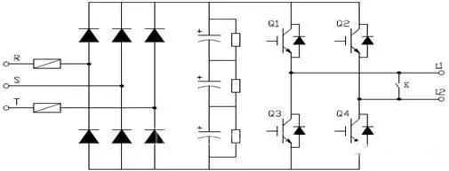 3)变频器配置自动旁路柜——当变频器出现“二级单元旁路”故障后,没有及时更改单元,再出现其他单元故障时,变频器将报“重故障”,同时驱动整体旁路功能,将变频器完全旁路出来,使风机彻底脱离变频器控制——工频运行,如图3所示。