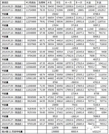 2)投运后11天平均负荷率为67.53%(与2014年平均负荷率基本相同),两台送风机11天节约厂用电量为6.021万KWh,每月按30天计算,统计的11天节约厂用电量约16.4万KWh,改造后二台送风机平均单日可节电量1.49万KWh,全年按运行11个月计算,节约厂用电量181万KWh,全年节约费用1810000*0.435=79万元,项目总投资为248.97万元,预计3.2年收回投资成本;