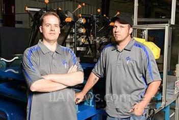 Conroe Machine公司的数控程序员James Wardell与机器人技术员Jeff Buck