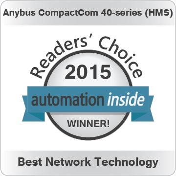 Automation Inside网站通过35个国家投票,选出了30个提名解决方案,最终Anybus CompactCom 40系列被评为了“2015最佳网络技术大奖”。