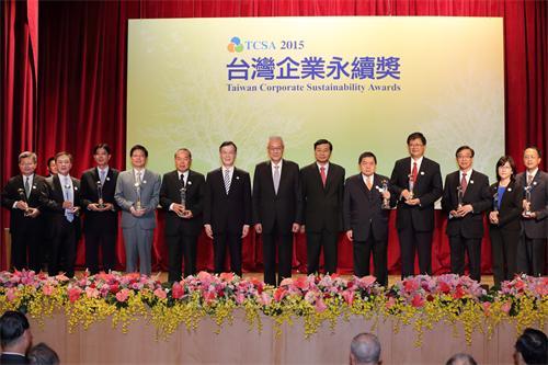 为表扬企业善尽社会责任,推动企业迈向永续发展,财团法人台湾永续能源研究基金会举办第八届“2015 TCSA台湾企业永续奖”评选活动,“TCSA台湾企业永续奖”历届参奖企业共计112家,其营业总额与2013年台湾GDP比值为83.5%。2015年评选“台湾Top 50企业永续报告奖”及企业永续绩效类-综合评比“台湾十大永续典范公司奖”,七项单项评比-“创新成长奖”、“透明诚信奖”、“气候领袖奖”、“社会共融奖”及“创意沟通奖”、“供应链管理奖”和“永续水管理奖”,共计九大奖项。