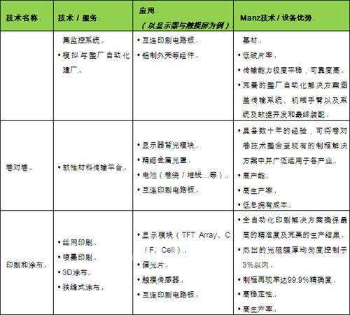 降低终端产品的生产成本作出了巨大贡献。为了履行这一承诺,Manz 不断优化其产品组合,以便在客户端建立可信任的生产制程,同时也稳步提高Manz 设备制造的产品性能参数。这个目标成为Manz 创新的一个重要动力,帮助实现关键技术的突破,例如可持续发电、全球通信产业所需的显示器和电力驱动交通工具。
