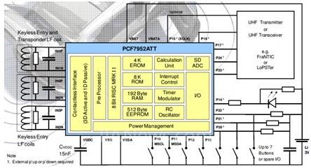 作为首家量产PEPS方案的半导体厂商,NXP目前可以提供完整的解决方案,其主流芯片PCF7952具有高集成度、低功耗的特点,集成了引擎防盗(IMMO)、遥控钥匙(RKE)和无钥匙启动(PKE)的所有功能。
