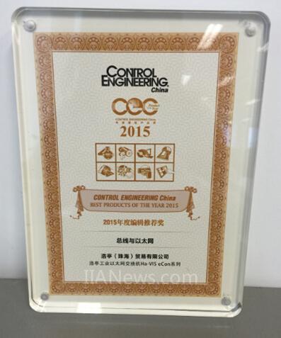 浩亭Ha-VIS eCon系列以太网交换机从90多家国内外厂商的164款最新产品中脱颖而出,荣获《控制工程》杂志中文版颁发的2015年度编辑推荐奖。