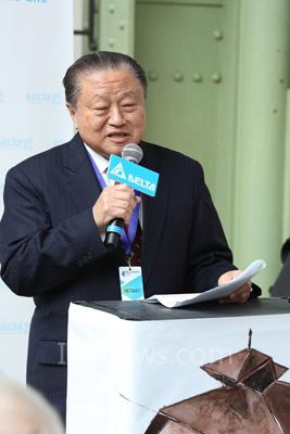 图二 台达集团创办人暨荣誉董事长郑崇华分享台达绿色建筑“筑回自然”的理念和经验