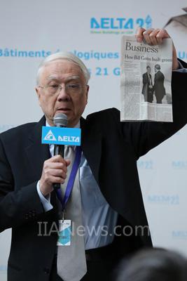 图四 台湾中研院院士刘炯朗教授呼吁各界共同努力减缓地球暖化,重视绿色建筑的节能潜力