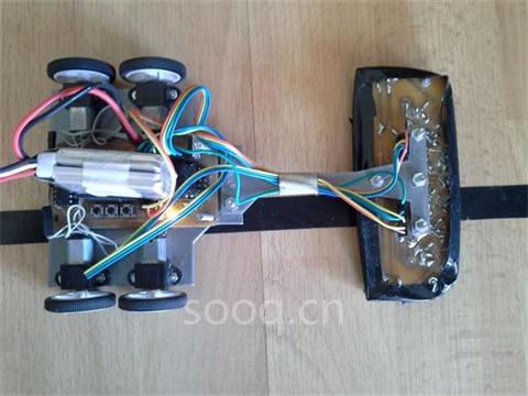 如果你无意中发现了这台3D打印追踪器,一定会被它食蚁兽一般的外形所吸引。为什么这个机器人的前伸部分与后半部分距离如此之远?传感器被安装在前伸部分,离轮胎如此远有着特殊的原因。这个传感器是用来检测线条轨迹的,所以离轮胎越远,机器就有更多的时间进行反应。