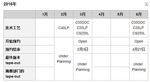 "Shuttle service"是指用降低芯片成本来验证客户设计的手段, 采用多项设计共享晶圆、掩模以控制成本。以下是三重富士通半导体的2016年 “Shuttle service”排期表,包括最新的55ns DDC(C55DDC)工艺技术和服务体验也将于2016的3月、6月开放,感兴趣者可提前在其官网申请。