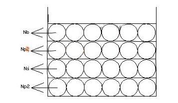 接下来我们来看一下高频电源变压器的第二种三明治绕法,次级夹初级的绕法。这一绕法有时候也被叫做次级平均绕法,其绕制原理图如下图图2所示,当使用这一绕制方法进行电源变压器的绕制时,绕制顺序为Ns/2-Np-Ns/2-Nb。当输出是低压大电流时,一般采用此种绕法居多。