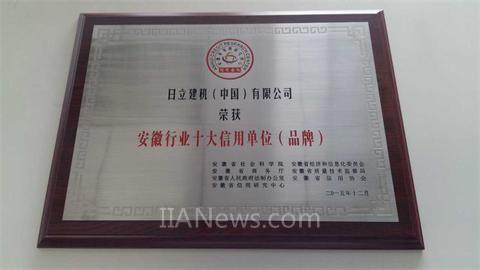 日立建机(中国)有限公司荣获“安徽行业十大信用单位(品牌)”荣誉称号