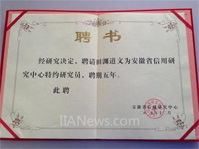 日立建机(中国)有限公司田渊道文总经理被安徽省信用研究中心聘请为“安徽省信用研究中心特约研究员”