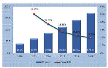 2014年,全球工业互联网服务市场约为412.5亿美元,预计到2019年将增长到1737.3亿美元,增长率高达33.32%。