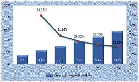 图3 全球工业互联网安装服务市场规模(2014-2019)