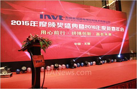 飞雪纳祥瑞,喜气送春来,羊随新风辞旧岁,猴节正气报新春。2016年1月14日,无锡英威腾电梯控制技术有限公司2015年度颁奖盛典暨2016年“用心前行,拼搏创新,赢在未来”迎新晚会在无锡希尔顿酒店落下帷幕。本次晚会特邀相关行业领导和企业嘉宾出席,晚会设有多个颁奖环节,一年来兢兢业业的伙伴们获得了应有的表彰和嘉奖。整个晚会就是英威腾的员工们用心奉献的饕餮盛宴。