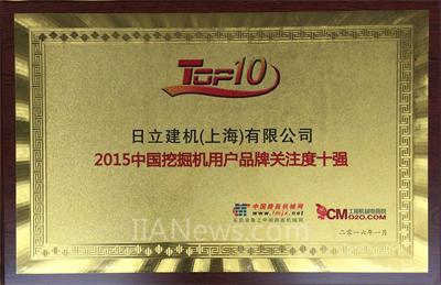 日立建机再获“2015中国挖掘机用户品牌关注度十强”