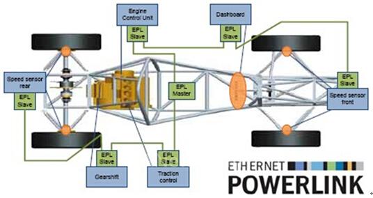 传统且具有良好验证的 CAN 总线是汽车工业的一个标准。现代技术对于波特率和同步性的需求导致了对以太网技术实时协议的研发,POWERLINK 建立了适应于汽车的分布式网络,主要的优势在于使用了传统以太网的物理层芯片,这使得它无需使用特殊的硬件。它允许以太网技术更新升级获得应用,项目经理卡斯滕霍姆安德森说道。