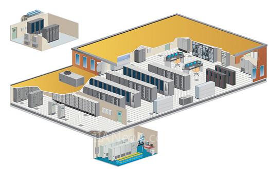 2、环境控制系统,通常选用机房精密空调对数据中心的环境调节,确保服务器等IT设备的运行环境。对于发热量大的服务器等IT设备,通常选用高通孔率(一般大于70%)网孔门的机柜,提高机柜进出风量;将机柜面对面、背对背布置,在机房内形成冷热隔离的风道,提高制冷效率;空调采用下送风方式,确保机房送风均匀,提高制冷效率。