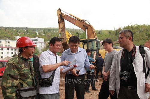 图4 签约仪式后,各单位出席代表及设计院专家前往大寨中学教学综合楼项目用地勘查场地现况