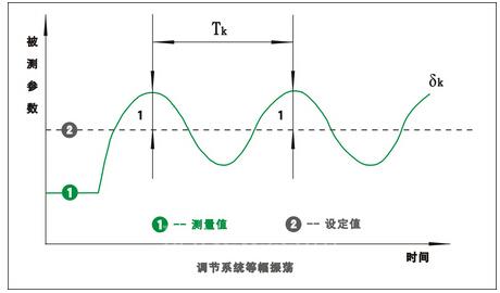 一个调节系统,在阶跃干扰作用下,出现既不发散也不衰减的等幅震荡过程,此过程成为等幅振荡过程,如下图所示。此时调节器的比例度为临界比例度δk,被调参数的工作周期为为临界周期Tk。