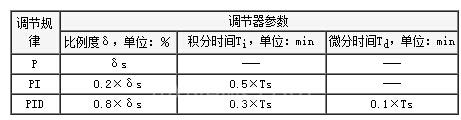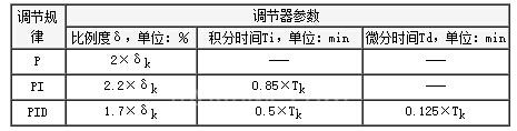 2、根据临界比例度δk和为临界周期Tk,按下表计算出调节器参数整定值