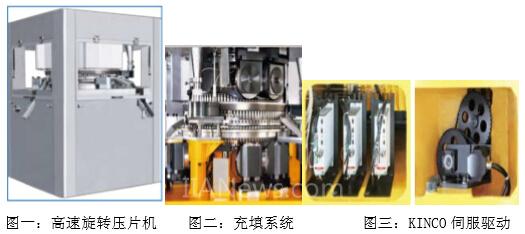 压片机,顾名思义,就是将干性颗粒状或粉状物料通过模具压制成片剂的机 械。压片机早起源于欧美,国内九十年代才开始发展,近年来随着国内技术发 展以及市场需求不断扩大,高速旋转式压片机应运而生,这种压片机压制模具的 轴心随转台旋转的线速度不低于 60m/min,每小时产量都在 10 万颗以上,在用 人成本越来越高的现代社会,该机型迅速成为市场具竞争力的压片机。本文介 绍 Kinco ED 伺服 CAN 总线在高速旋转压片机充填系统上的应用。