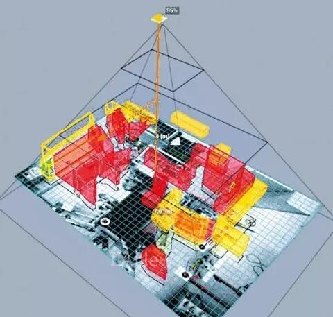 Zimmer集团的工厂基本运行两种防护区。黄色区域是警告区域:进入该类区域不会自动形成对操作人员的危险。但是黄色警告灯会亮起,声音信号会响起。安全限制速度启动部件以安全速度运行,以此作为预防措施。如果工人意识到自己误入该区域,然后再次离开虚拟警告区域,工厂则按正常速度继续运行。但是,如果工人进入邻近的红色区域,工厂则会安全关闭:红灯会亮起,警告信号会响起。若要恢复生产模式,操作人员必须确认身份,以便工厂可以重新启动。