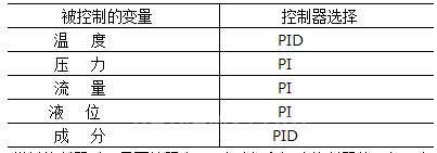 在使用模拟控制器时,由于各行业应用对象的特性是不相同的,如对象很敏感,或被控流量常是脉动状态时,就不应再用微分功能了,否则会使脉动信号的变化加剧。再就是间歇或断续生产的控制过程有其特殊性。所以控制器选型是个较复杂的问题,通常要求按照被控对象的特性来选择控制器。对于有经验的仪表工大多是按照自己的实践经验来确定控制器的选择。而且PID控制器是用得最多的,因为它可以解决大部分的控制问题。表1表示最普遍的控制器选择方法。