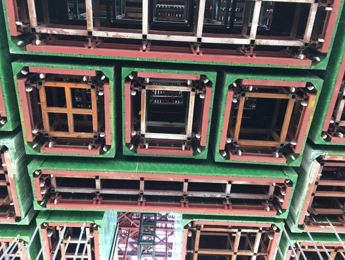 “空中造楼机”建造技术与装配式建筑技术一样,符合“工程质量可控、建安成本可控、建造周期可控和减少建筑垃圾排放”的建筑工业化目标,满足绿色建造节地、节能、降噪、减少建筑扬尘的要求。预制和现浇都需要格构钢筋楼承板或混凝土叠合板、楼梯等水平构件,剪力墙钢筋网笼和门窗洞口等配套部品在工厂生产并被运输到建筑工地进行装配。