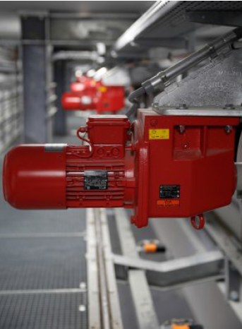 图4:驱动输送链上的链条通过诺德同轴斜齿轮减速电机来驱动