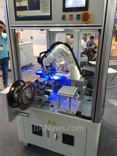 引言:全球领先的工业机器人制造商KUKA公司联合富强科技在博览会上精彩亮相,现场除了有KUKA展示的LBR iiwa检测pad应用工作站之外,还展示另外两台配备KUKA机器人的高速高光机HSC430L、高速高精度PCBA组装机,多方位地向观众展现了世界顶级的自动化技术,在智能制造行业引发全新潮流。