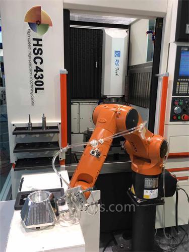 此次KUKA联合富强一起推出的高速高光机HSC430L机身采用花岗岩材质,机床稳定性极高。机台外搭配了KUKA小型机器人KR6 R900进行上下料动作,实现机床上下料自动化。