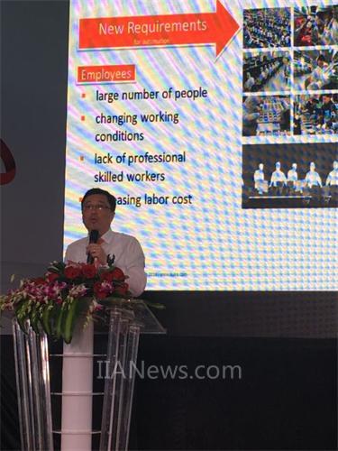 在华总的主题演讲中,他也提到了对于KUKA客户来说,“Made by KUKA Roboter”的自动化是提升生产效率和增加经济效益的重要法宝。不仅促进产品质量提高,还能降低高昂的物料消耗,并且减少稀缺能源资源的使用。机器人凭借高度灵活的自动化能力,取代了十几年前还广泛使用的呆板、昂贵的特殊机械制造。过去,工业机器人几乎仅仅应用于汽车行业和大批量生产领域。通过坚定不移地持续发展机器人和控制系统技术,KUKA机器人公司现在进入了汽车工业以外的许多其他行业,开发活动主要以新兴市场中的应用为目标 - 尤其是食品、塑料、金属加工、铸造、电子、医疗技术或娱乐业。