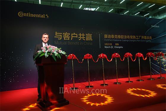 康迪泰克橡胶涂布业务单元负责人Peter Scholtissek博士在开业典礼上致辞