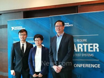 (右一为NI大中华区总经理陈健忠先生,中间为NI中国半导体业务拓展经理何为女士,左一为NI资深技术市场经理陈宇睿先生)