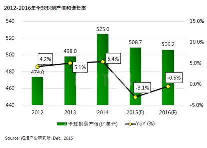 图2:拓璞产业研究所公布2012~2016全球封测产值数据