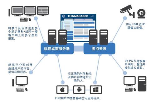 上图即为ThinManager工作原理图,它可以在确保物理安全和网络安全的同时,将内容传送至任意组合的设备、用户和位置。例如可以传送到多个显示器、访问USB及IP摄像头、移动应用程序等各个位置。如此强大的ThinManager,其优势也应该体现在各个方面,究竟有哪些呢?