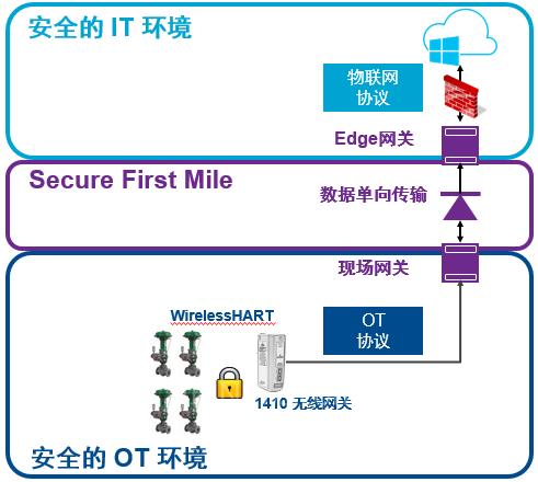 Secure First Mile 提供的是一系列网络安全手段、设备和设计,包括网络安全服务、安全灵活的服务器、网关和数据单向传输技术,以确保数据运营技术系统中的数据可以方便安全地与基于网络的应用相连接。Secure First Mile 主要是在产生过程数据的地方将传感器或设备信息转化为安全的数据供英特网和云端使用。