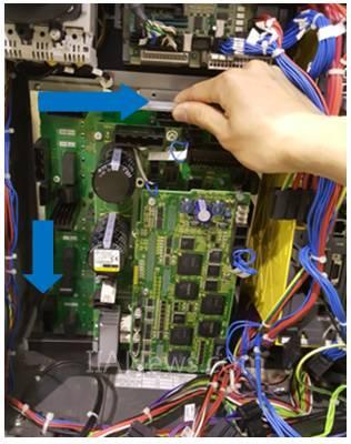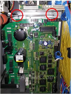1.4使用长柄十字螺丝刀拧松固定6轴伺服放大器的两颗螺丝。