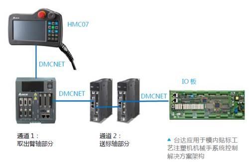 注塑机机械手作为实现注塑生产自动化的专业装置,能够有效代替人工对注塑生产进行物料取放作业,在提升注塑生产效率、降低生产成本、稳定产品品质、实现安全生产等方面发挥着重要作用,尤其是在当前人工成本持续上涨的背景下,注塑机机械手的应用也越来越广泛。同时,注塑工艺的不断创新发展也对注塑机机械手的功能提出了更高的要求。本文主要介绍台达注塑机机械手控制解决方案在模内贴标工艺上的应用,分享台达人机控制器HMC 双通道控制的"精妙之道"。